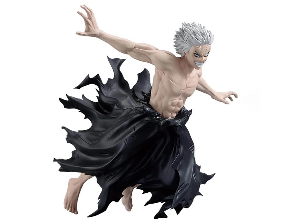 The terrifying symbol of evil from My Hero Academia appears in this powerful All For One figure by Banpresto. Captured mid-motion with a menacing grin and arms spread wide, this figure showcases the villain’s overwhelming presence and destructive power. The dramatic sculpt highlights his muscular build and the flowing, shadow-like design of his torn cloak, giving the figure a striking sense of movement and intensity.