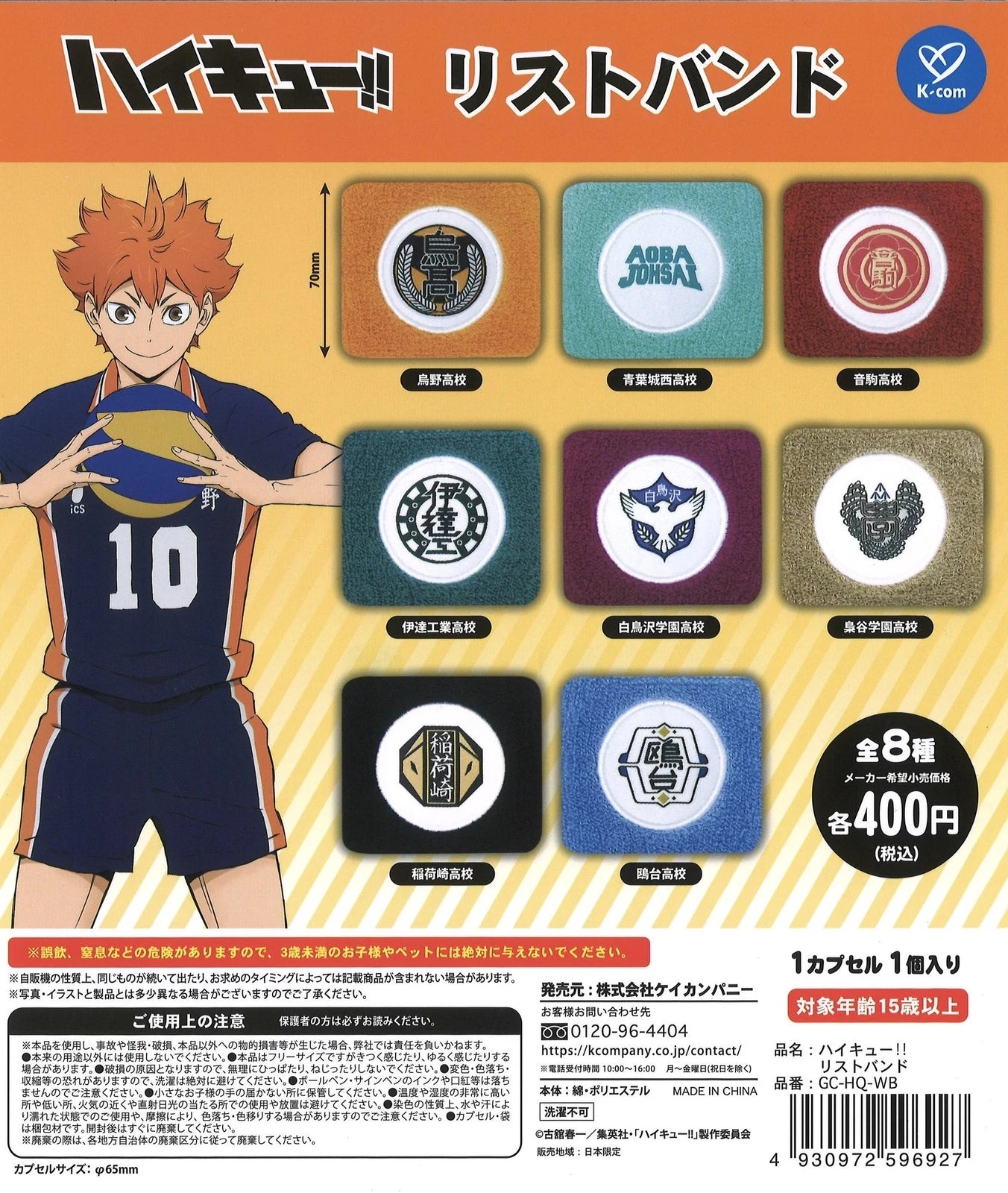 Haikyuu!! Wristbands Gachapon Collection - 1 Random Capsule is backordered and will ship as soon as it is back in stock.